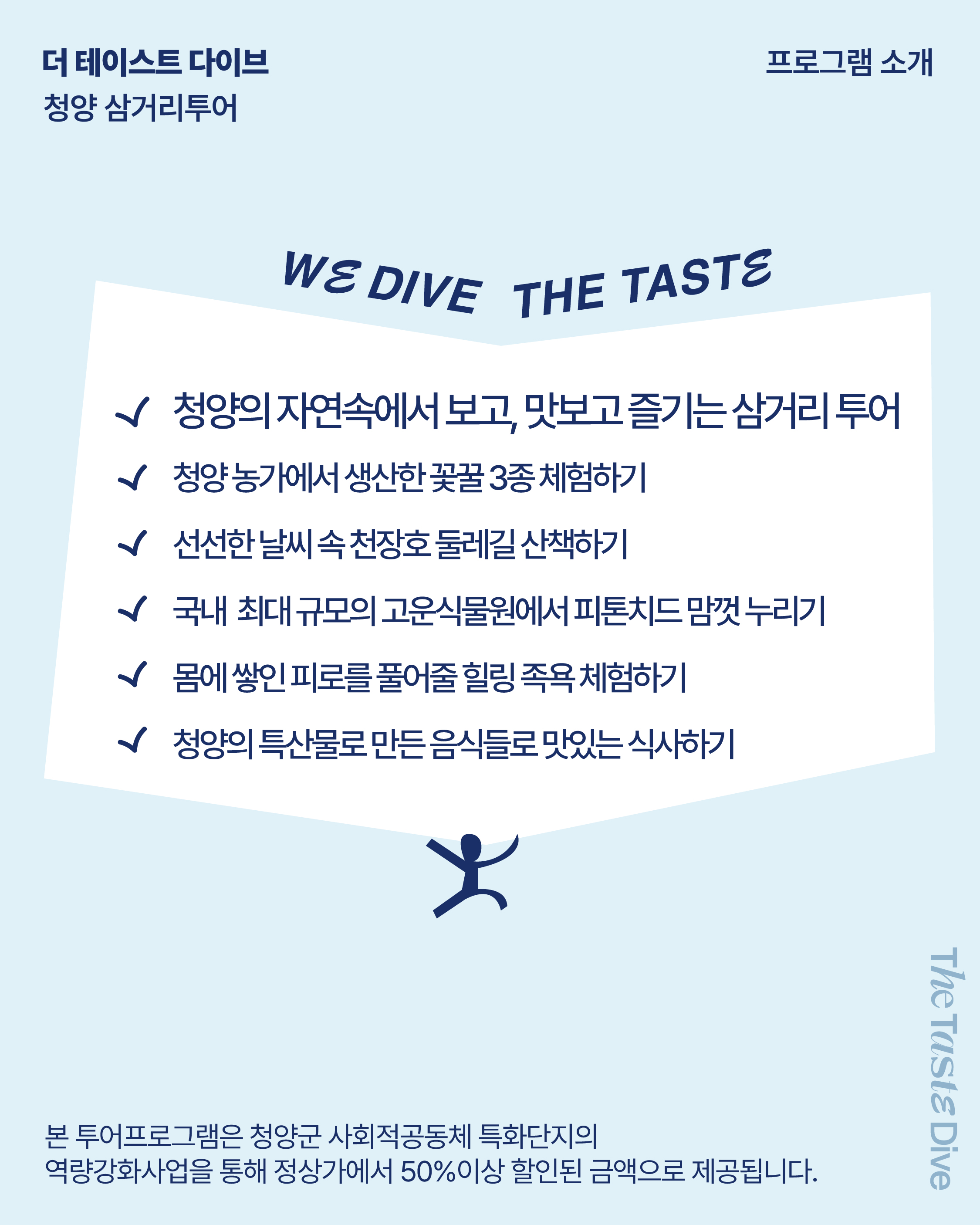 청양의 주민이 직접 기획하는, 청양 자원 기반 로컬 투어 프로그램 '더 테이스트 다이브'