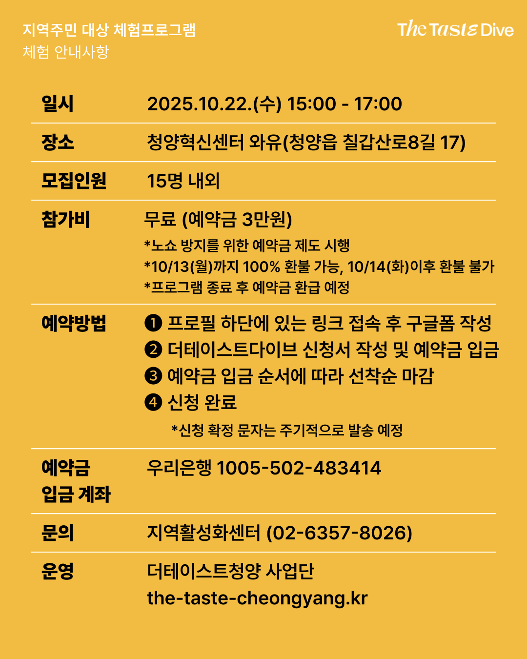 청양의 주민이 직접 운영하는 청양 자원 기반 로컬 체험프로그램 '더 테이스트 다이브'
